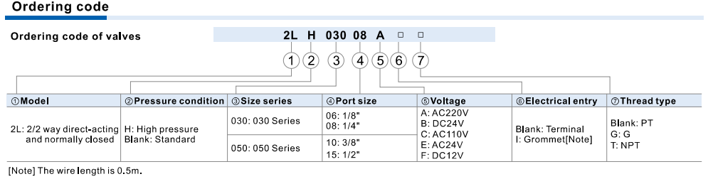 | Valve type | Coil type | Power type | Frequency (Hz) | Voltage range | Electrical entry | Power consumption (VA/W) | Insulation | Temp. rise (˚C) |